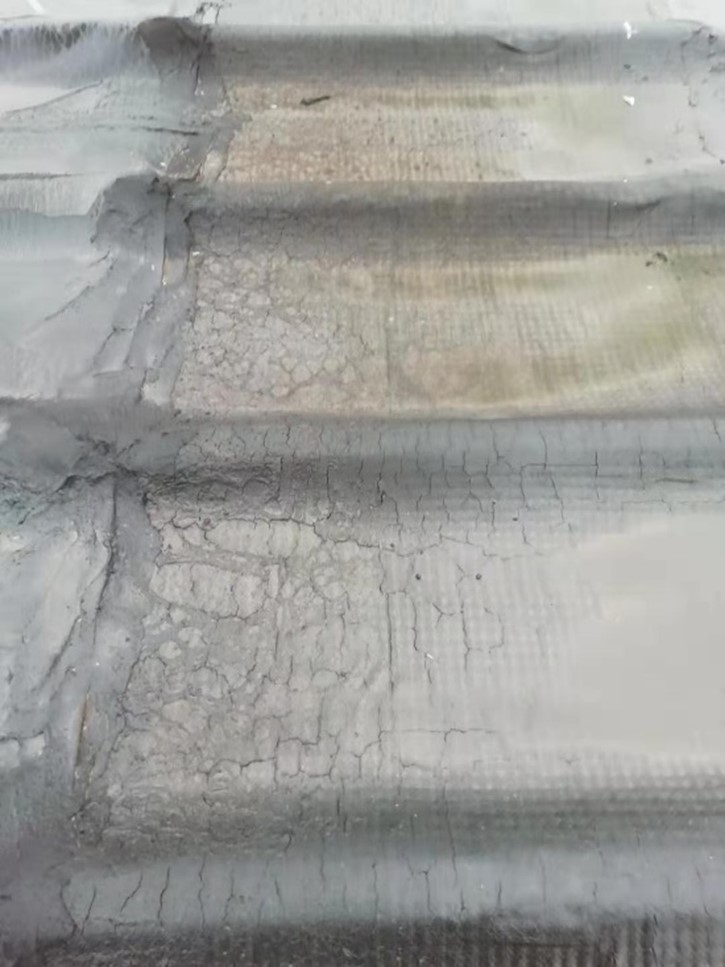 彩鋼頂表面采用SBS改性瀝青防水卷材施工的,兩年后改性瀝青防水卷材出現開裂情況嚴重