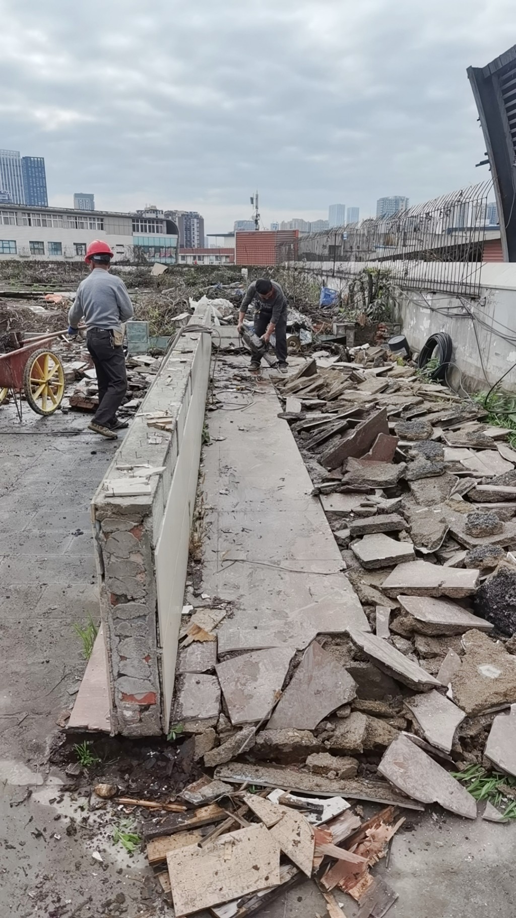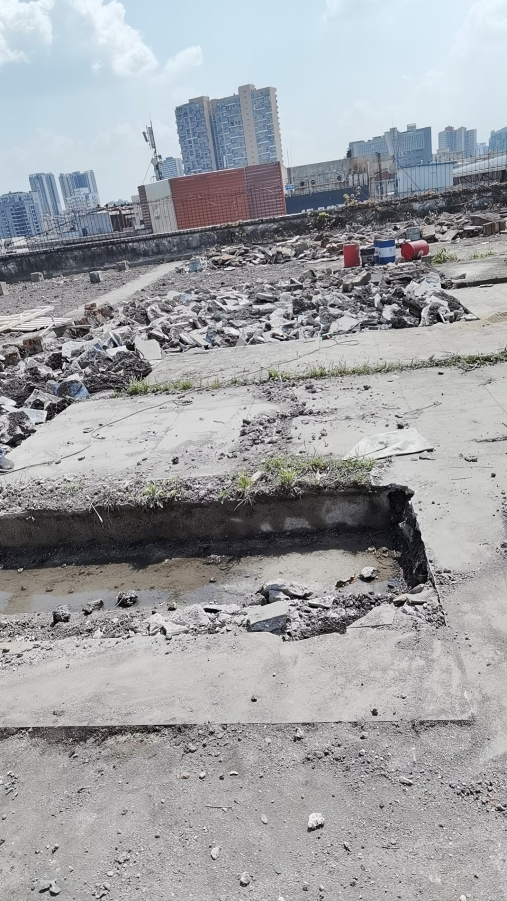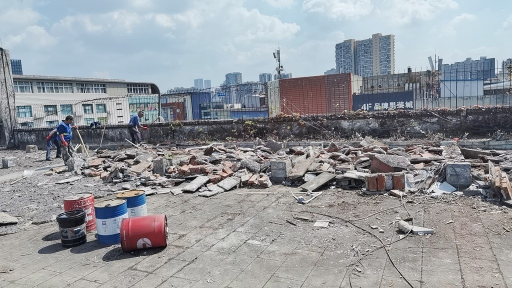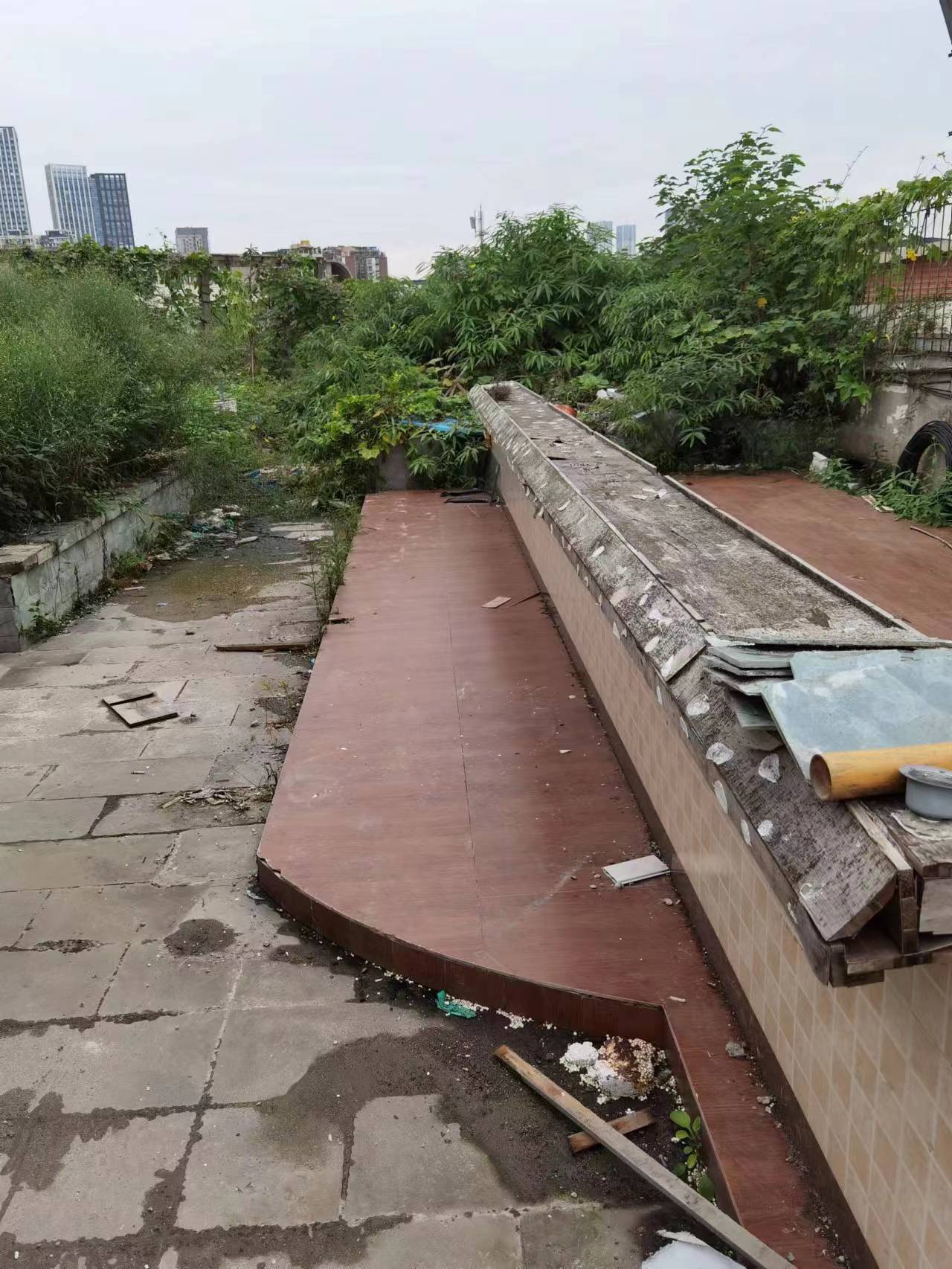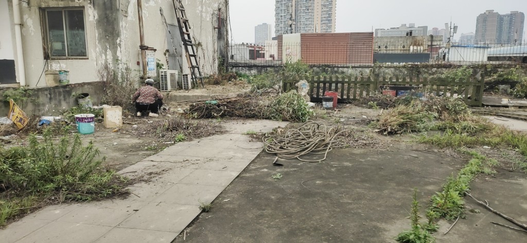 屋頂表面施工之前花臺以及瓷磚等非常雜亂(如下圖)