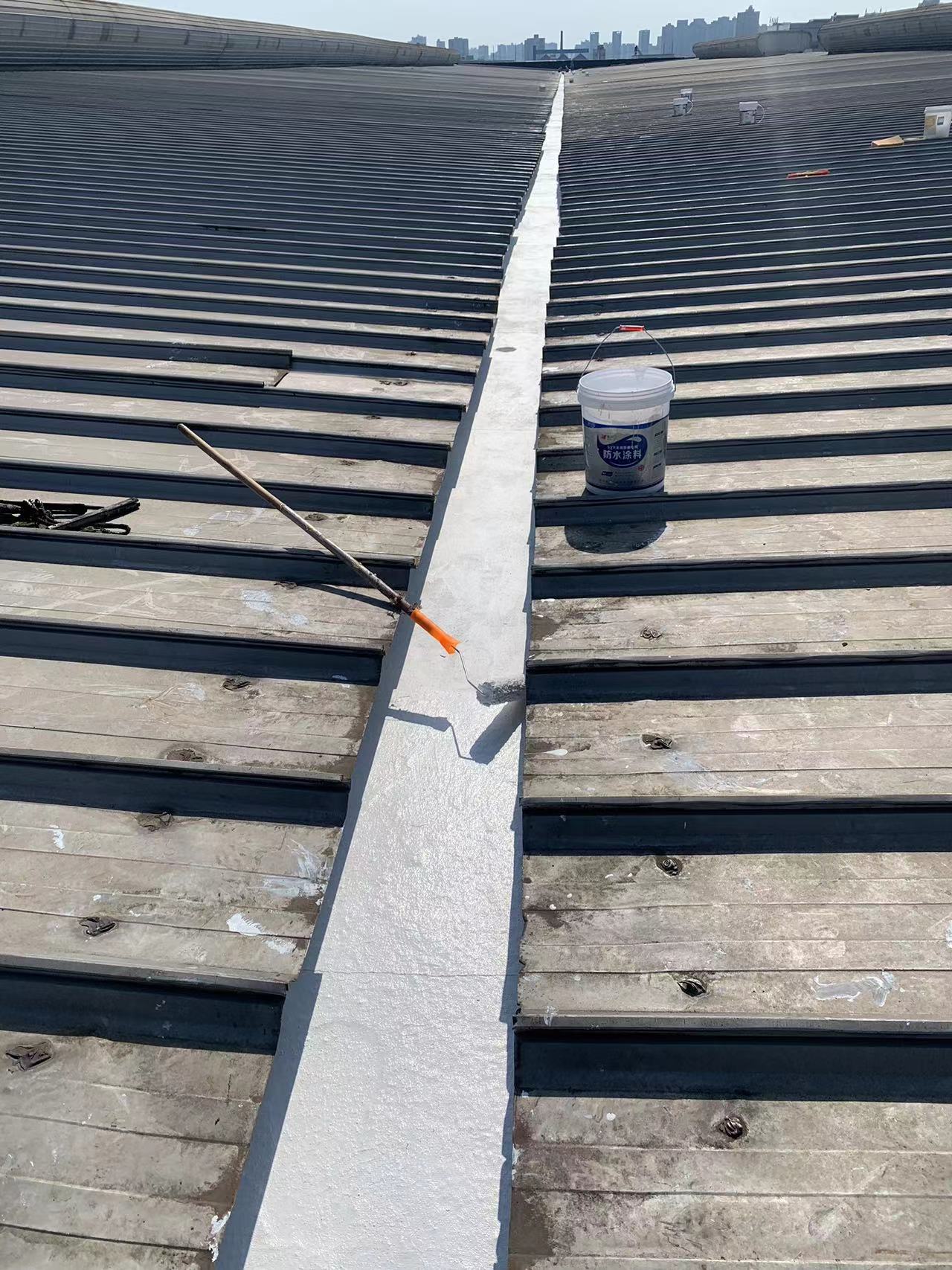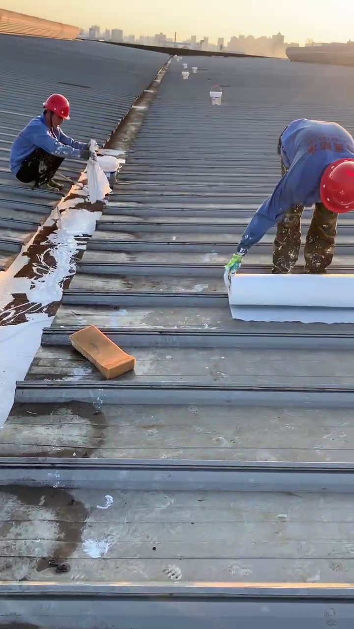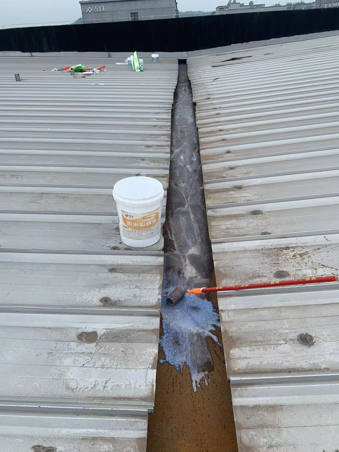 針對這一情況,成都蜀禹建筑防水工程有限責任公司迅速制定了科學合理的施工方案。他們首先對天溝內部進行了徹底的清理,然后使用彩鋼板插入已爛掉的下水管內,滲入漏斗進行固定。接著,他們采用SYR金屬屋面專用防水涂料配合縫織聚酯布進行防水防腐補漏施工處理。此外,為解決銹蝕問題,施工團隊在天溝內滿涂刷納米固銹劑進行基面固銹處理。待涂料干燥后,他們在天溝的底部及兩側面涂刷了SYR金屬屋面專用防水涂料并滿鋪貼專用縫織聚酯布,表面再涂刷SYR金屬面專用防水涂料。待所有涂料干燥后,他們又對表面進行了一次涂刷SYR金屬屋面專用防水涂料,使整個天溝得到了全面的保護。