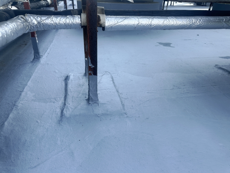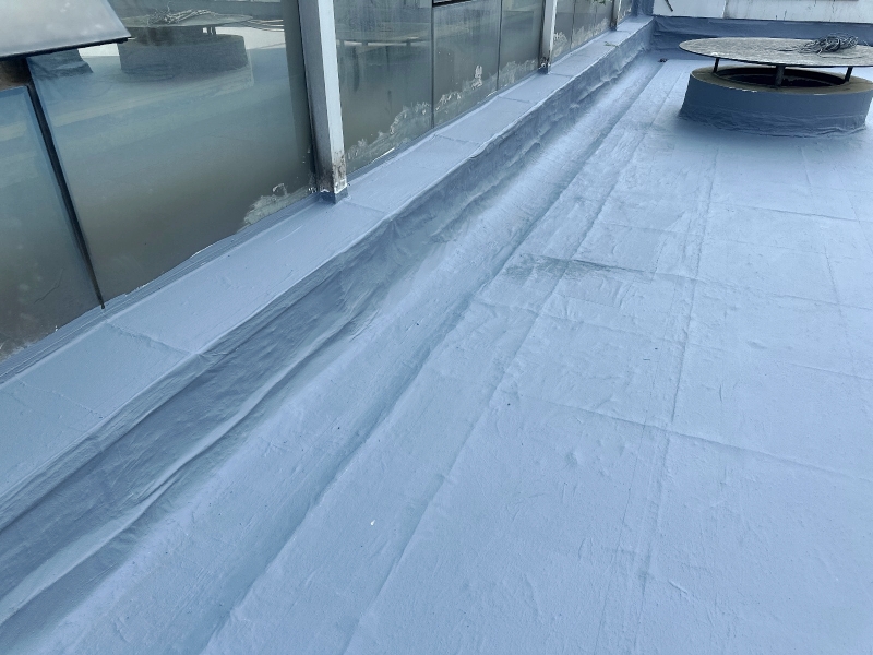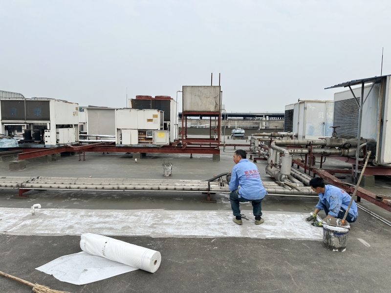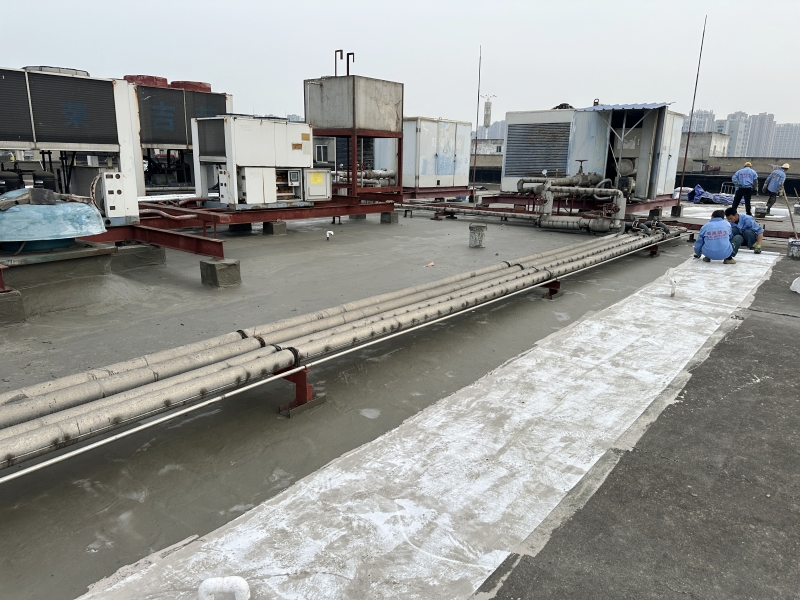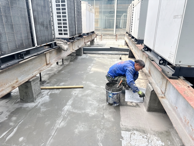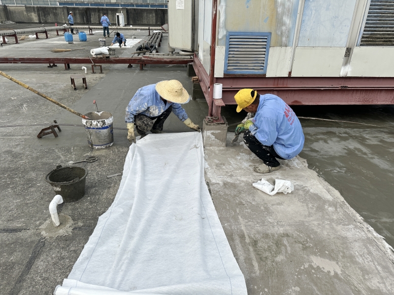 1. 基層處理:首先,施工團隊對屋頂表面基層進行了徹底的清理,確保無灰塵、油污等雜質,為后續防水層施工打下堅實基礎。針對基層表面的局部不平整和翻砂現象,進行了砂漿修補和涂刷混凝土液體硬化劑處理,有效增強了基層的強度和穩定性。