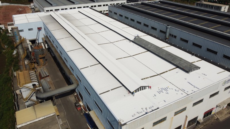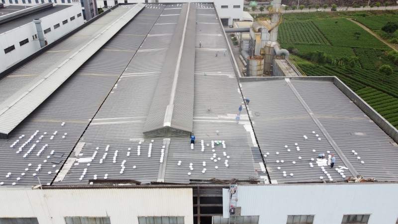 四川合裕鋁業(yè)有限公司 2 號鋼結(jié)構(gòu)廠房已投入使用數(shù)年,廠房下方設(shè)有高溫鍋爐,特殊的使用環(huán)境與長期的自然損耗,使得屋面逐漸出現(xiàn)較多漏水位置。這一問題不僅影響廠房內(nèi)部設(shè)備的正常運行,還對生產(chǎn)安全與產(chǎn)品質(zhì)量構(gòu)成潛在影響。為徹底解決漏水隱患,甲方四川合裕鋁業(yè)有限公司經(jīng)過多方面考察分析,對不同防水方案的技術(shù)可行性、耐用性等進(jìn)行綜合評估后,最終決定選用蜀禹防水的 SYR 金屬屋面無縫防水系統(tǒng),對 2 號鋼結(jié)構(gòu)廠房彩鋼頂進(jìn)行防水補漏防腐翻新施工。