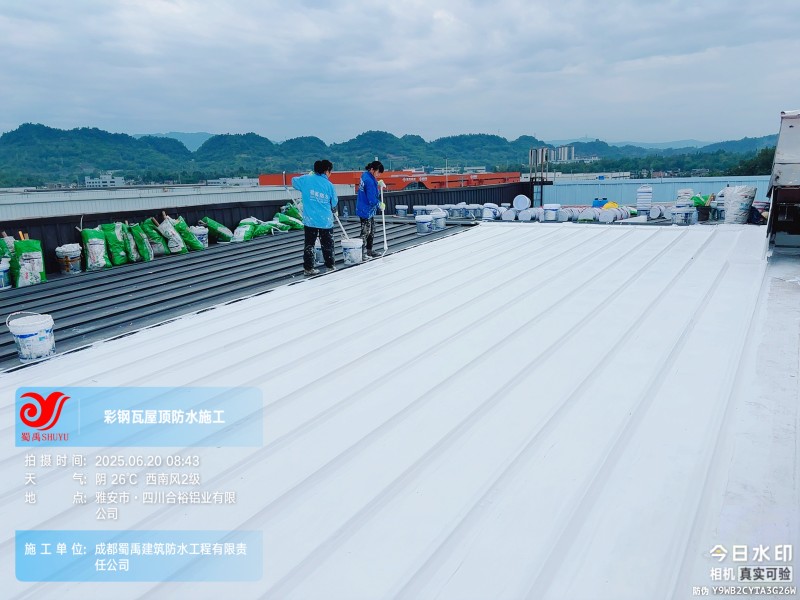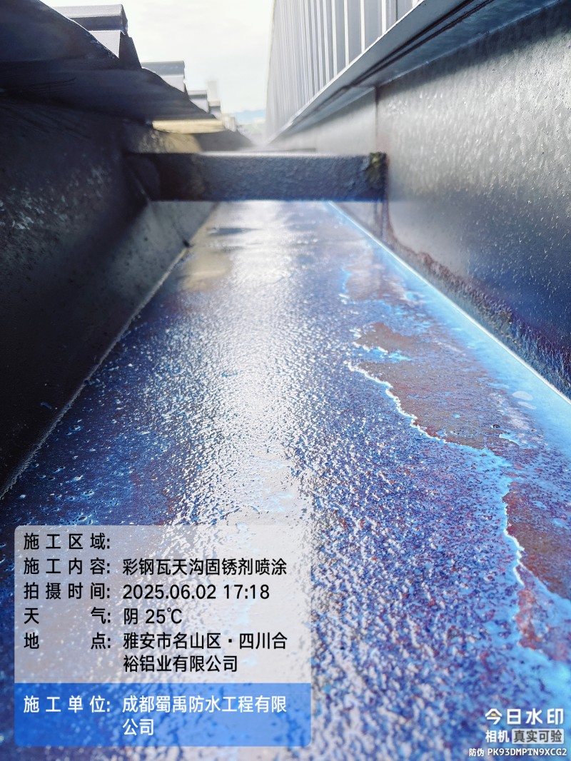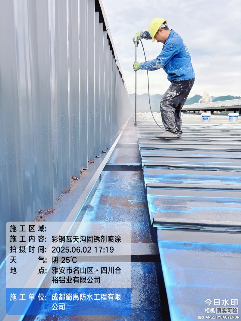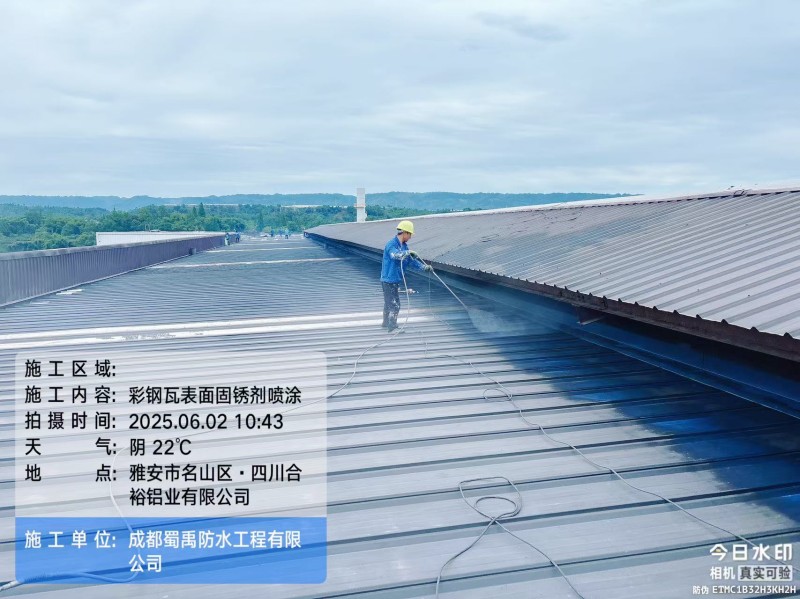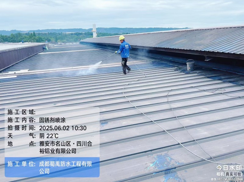 在工業(yè)生產(chǎn)場景中,鋼結(jié)構(gòu)廠房屋頂?shù)姆浪栏阅苤苯雨P(guān)系到廠區(qū)生產(chǎn)活動的穩(wěn)定開展。近期,成都蜀禹建筑防水工程有限責(zé)任公司(以下簡稱 “蜀禹防水”)成功承接并完成了四川省雅安市名山區(qū)永興鎮(zhèn)永興四路四川合裕鋁業(yè)有限公司廠區(qū)內(nèi) 2 號鋼結(jié)構(gòu)廠房屋頂防水補漏防腐翻新工程,憑借專業(yè)的技術(shù)方案與細(xì)致的施工服務(wù),為該廠區(qū)解決了長期困擾的屋面漏水問題。
