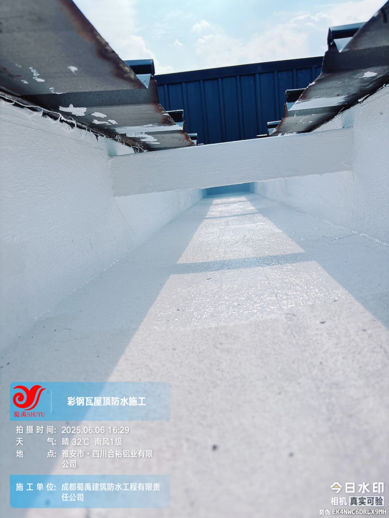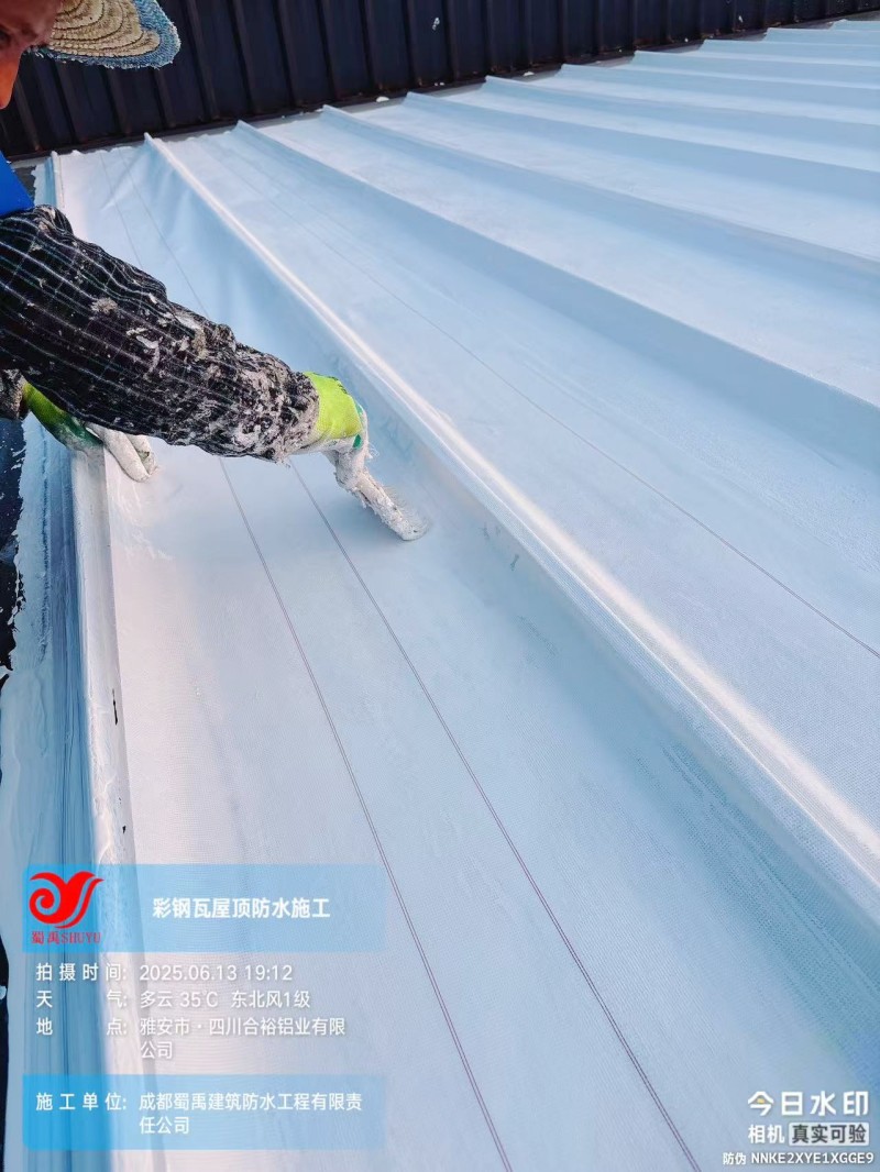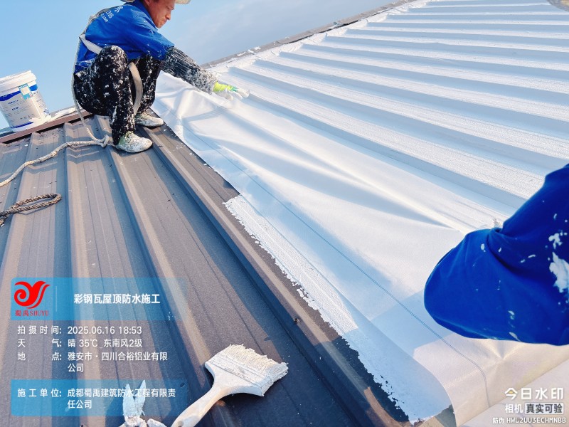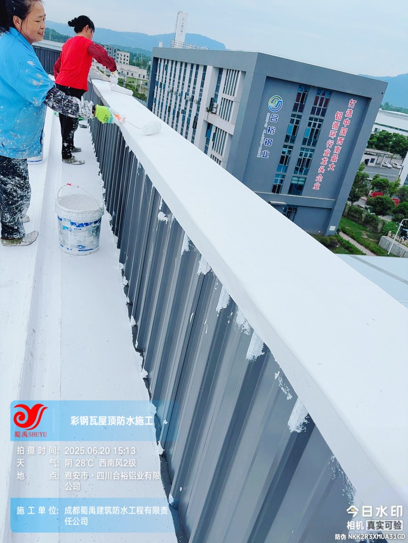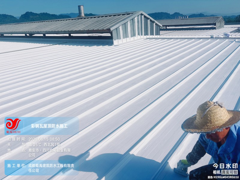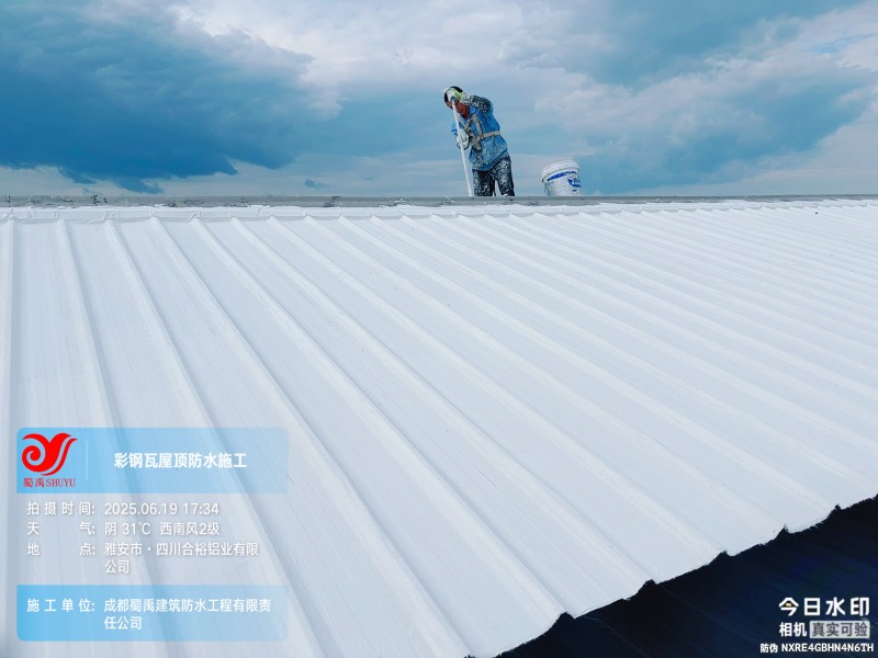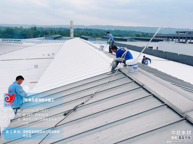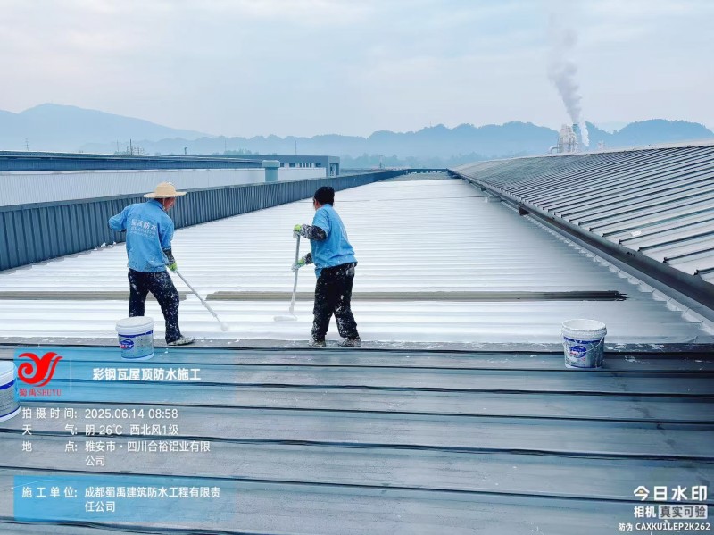 此次四川合裕鋁業(yè) 2 號鋼結(jié)構(gòu)廠房屋頂防水補漏防腐翻新工程,蜀禹防水團(tuán)隊嚴(yán)格按照施工方案與技術(shù)標(biāo)準(zhǔn)開展作業(yè),從基面處理到涂層涂刷,每一個環(huán)節(jié)都做到精細(xì)化把控。通過采用 SYR 金屬屋面無縫防水系統(tǒng),結(jié)合科學(xué)的施工流程,成功解決了廠房屋面的漏水問題,同時為彩鋼瓦屋面提供了長期的防腐保護(hù)。