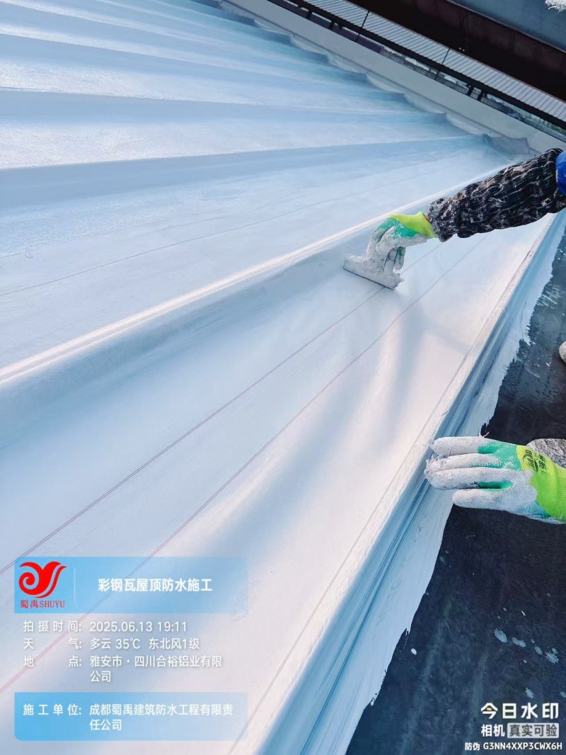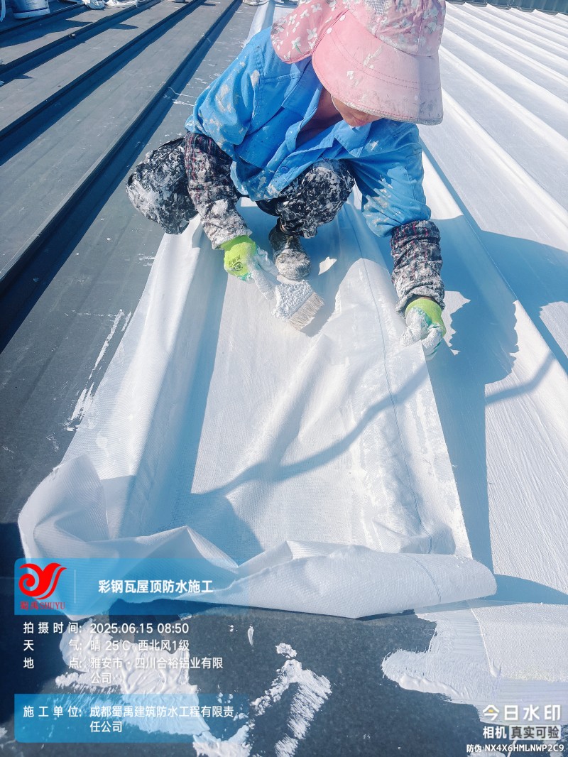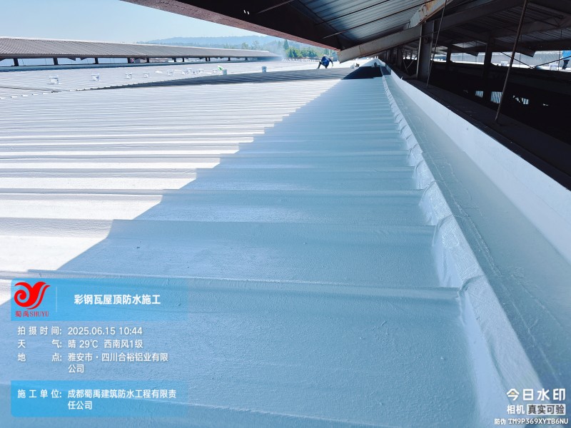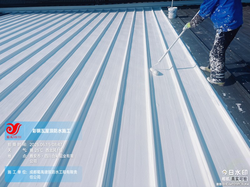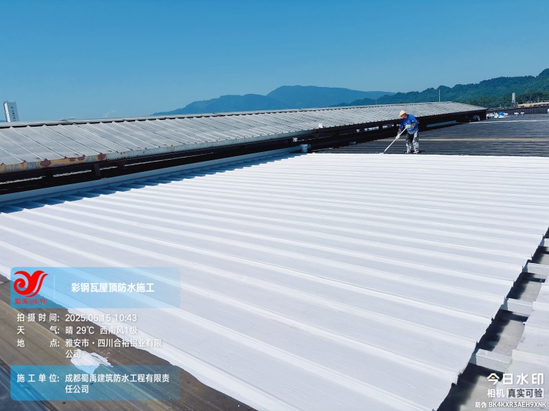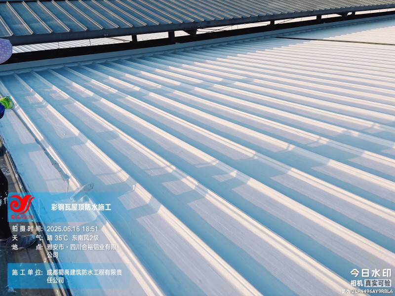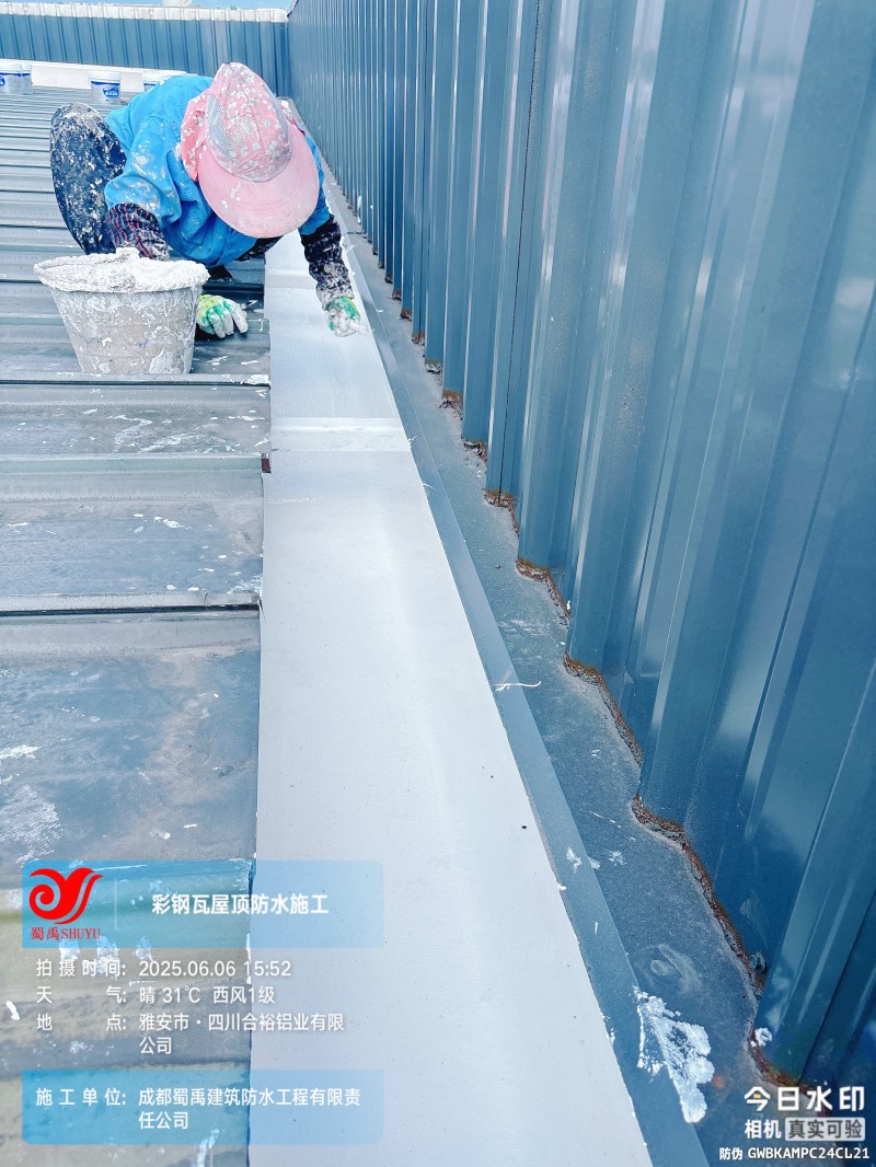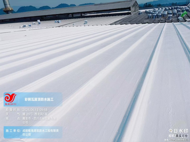 此次四川合裕鋁業(yè) 2 號鋼結(jié)構(gòu)廠房屋頂防水補漏防腐翻新工程,蜀禹防水團(tuán)隊嚴(yán)格按照施工方案與技術(shù)標(biāo)準(zhǔn)開展作業(yè),從基面處理到涂層涂刷,每一個環(huán)節(jié)都做到精細(xì)化把控。通過采用 SYR 金屬屋面無縫防水系統(tǒng),結(jié)合科學(xué)的施工流程,成功解決了廠房屋面的漏水問題,同時為彩鋼瓦屋面提供了長期的防腐保護(hù)。