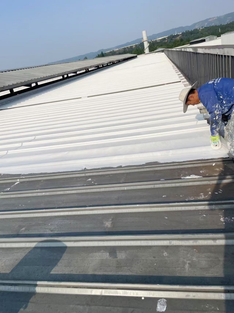 第一遍防水涂料涂刷:待納米固銹劑干燥后,在彩鋼瓦表面滿涂第一遍 SYR 金屬屋面專用防水涂料,涂刷過程中控制涂刷厚度均勻,確保涂層覆蓋所有區(qū)域,無遺漏、無氣泡;