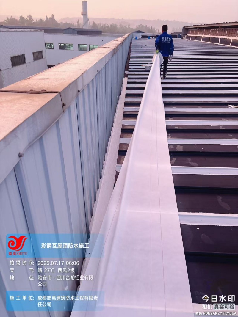 此次工程不僅讓雅安誠裕擺脫了 “反復漏水、反復維修” 的困境,更體現了蜀禹防水 “以技術破難題,以服務贏信任” 的理念。未來,蜀禹防水將持續以 SYR 金屬屋面無縫防水系統等核心技術為支撐,為更多工業企業解決防水痛點,守護工業建筑的安全與穩定。