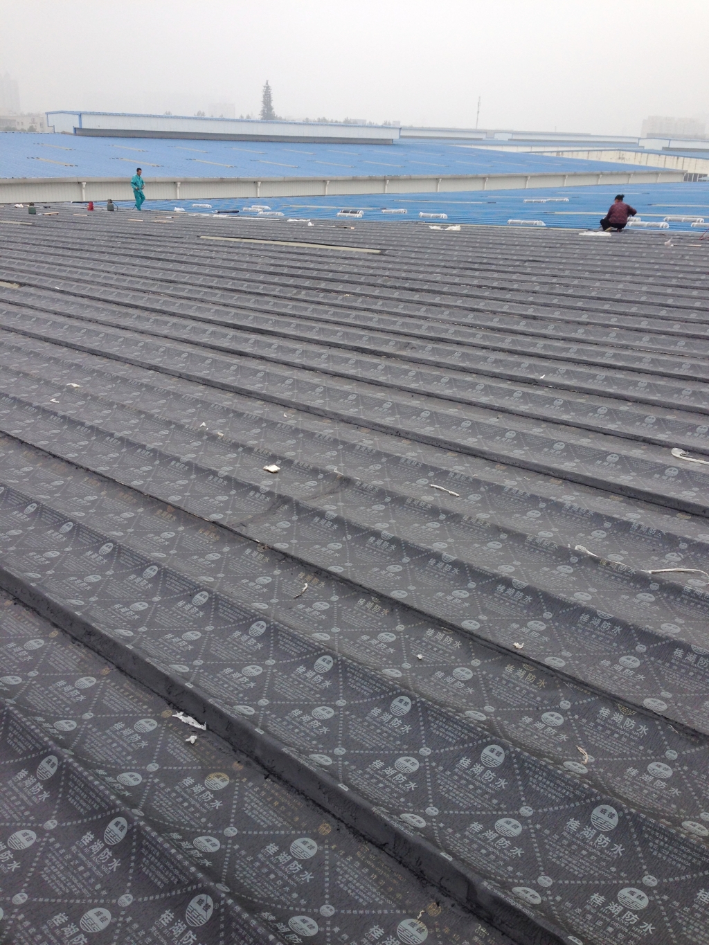 成都市郫縣科晶路88號阿波羅倉庫彩鋼瓦屋頂由于多處出現大面積彩鋼瓦接縫處漏水情況,我公司經過現場實際勘察,最終決定采用彩鋼頂漏水區域全做一層SBS改性瀝青防水卷材來解決漏水問題。